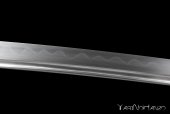 La lama è forgiata con struttura Maru Kitae, in acciaio AISI 1060 ad alto tenore di carbonio. È sottoposta a tempra selettiva all’argilla, che consente la formazione di un Hamon autentico in stile Notare, ben visibile lungo il profilo. La presenza del Bohi (scanalatura) contribuisce a ridurne il peso.