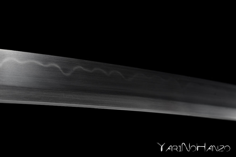 La lama è realizzata in acciaio AISI 1060 ad alto tenore di carbonio, con struttura Maru Kitae senza bohi, garantendo resistenza e bilanciamento ottimale. La tempra selettiva all'argilla conferisce un hamon autentico in stile Notare, aggiungendo un tocco estetico distintivo.