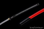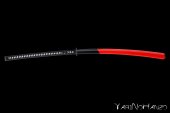 La tsuba minimalista è progettata per favorire la fluidità e la funzionalità, mentre la saya in legno laccato rosso/nero aggiunge un tocco estetico elegante e tradizionale. Ogni elemento del montaggio (koshirae) è pensato per offrire un’esperienza marziale fedele allo spirito giapponese.