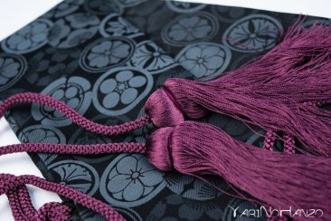 Katana Bukuro artigianale realizzata con tessuto giapponese "Kamon" con emblemi delle famiglie Samurai. (Fondo scuro ed emblemi chiari)