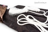 Katana Bukuro artigianale realizzata con tessuto giapponese di colore marrone a tema "Nami" (onde)